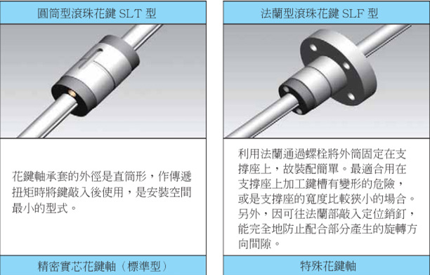 TBI MOTION 滾珠花鍵分為有法蘭型式之SLF及無法蘭型之SLT兩種型式,因軸徑之大小鋼珠之接觸路徑又可分為2排(180℃)(SLF6-20)和4排(70℃)(SLF25-50),此外亦提供空心軸、實心軸選擇使用。深圳市杰遠機電設備有限公司免費提供選型方案及技術支持,如在選型或是安裝尺寸方面有什么疑問請及時與我司聯系,我們將竭誠為您服務。服務熱線:15217037939 劉小姐,咨詢QQ:2814361965
