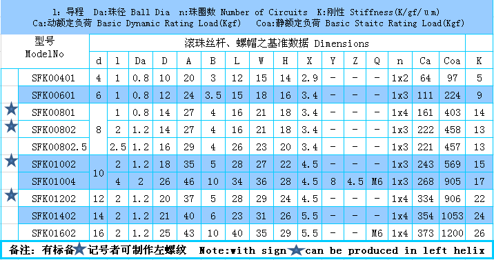 SFK 微小型滾珠絲桿(單螺母)