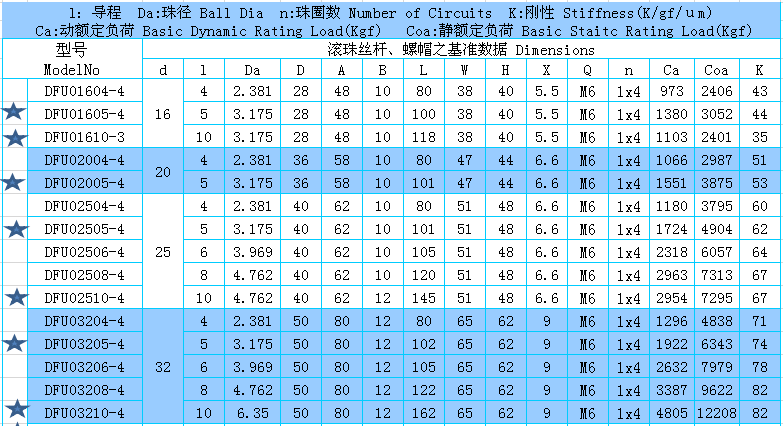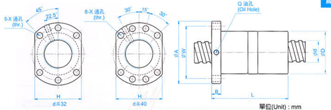 DFU 六孔法蘭安裝滾珠絲桿(雙螺母)