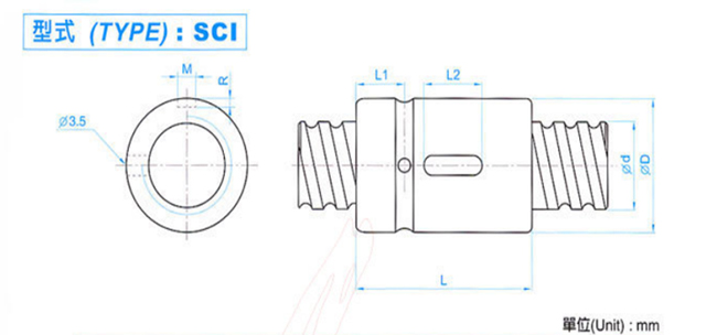 bi滾珠絲桿SCI 無法蘭(單螺母)