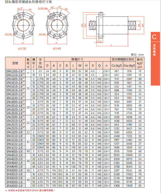 tbi滾珠絲桿SFA系列